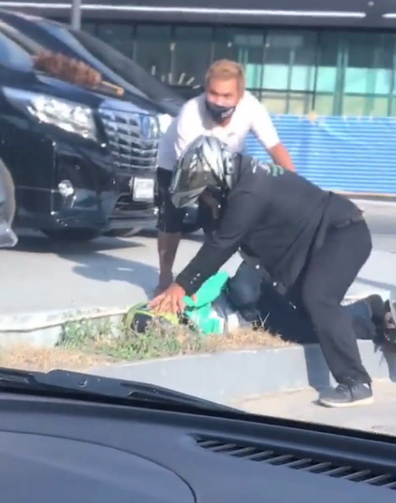 หนุ่มสุดงง กำลังไปส่งอาหาร จู่ๆมีคนมาถีบรถล้มและทำร้าย ก่อนขับรถหนีไป