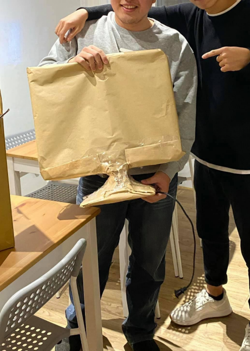โดยหนุ่มจีนรายนี้โพสต์รูปภาพ หลังจากที่ได้เข้าร่วมการแลกเปลี่ยนของขวัญ พร้อมอัพสเตตัสว่า วันนี้ในการแลกเปลี่ยนของขวัญ เราทุกคนคิดว่ามันเป็นหน้าจอ LCD แต่ผลลัพธ์ที่ได้คือ..............