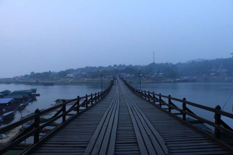 สำหรับบรรยากาศการท่องเที่ยวบริเวณสะพานไม้อุตตมานุสรณ์หรือสะพานมอญ รวมทั้งบริเวณบ้านวังกะ ซึ่งเป็นสถานที่ท่องเที่ยวชื่อดังของ อ.สังขละบุรี วันนี้เริ่มเงียบเหงา มีนักท่องเที่ยวที่เดินทางมาทำบุญตักบาตรและท่องเที่ยวบนสะพาน ไม่ถึง 100 คน