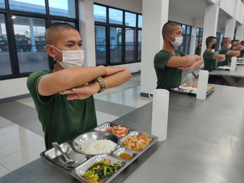 ทั้งนี้ หน่วยได้นำกุ้งที่ซื้อจากพี่น้องชาวเกษตรกร มาทำอาหารมื้อพิเศษ ให้กับน้องๆพลทหารกองประจำการได้รับประทาน โดยทางหน่วย ได้ทำตามมาตรการ การป้องกัน CV-19 คือ กินร้อน ช้อนกลาง ล้างมือ และสวมมาสก์ ตามนโยบายของกองทัพบก และกระทรวงสาธารณสุข