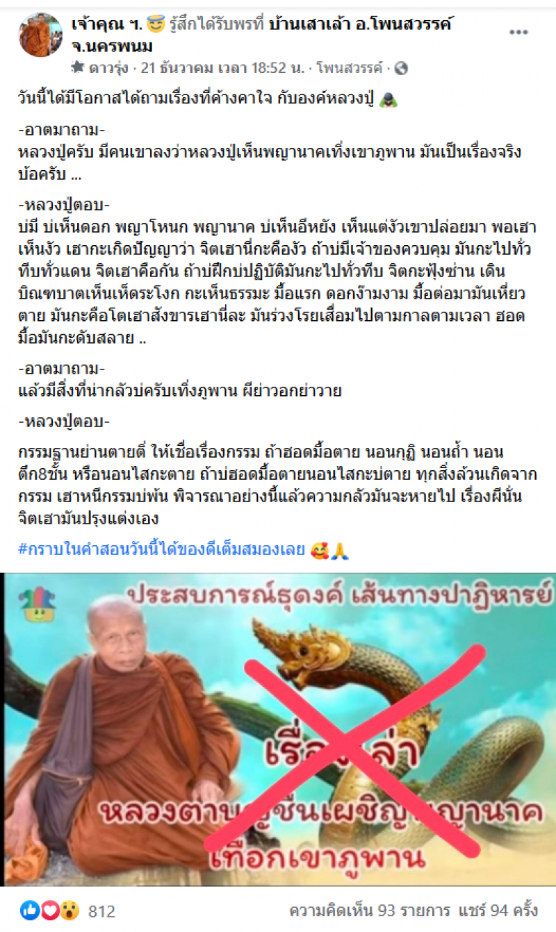 หลวงตาบุญชื่นตอบแล้ว หลังมีเรื่องเล่า เผชิญผญานาคเทือกเขาภูพาน