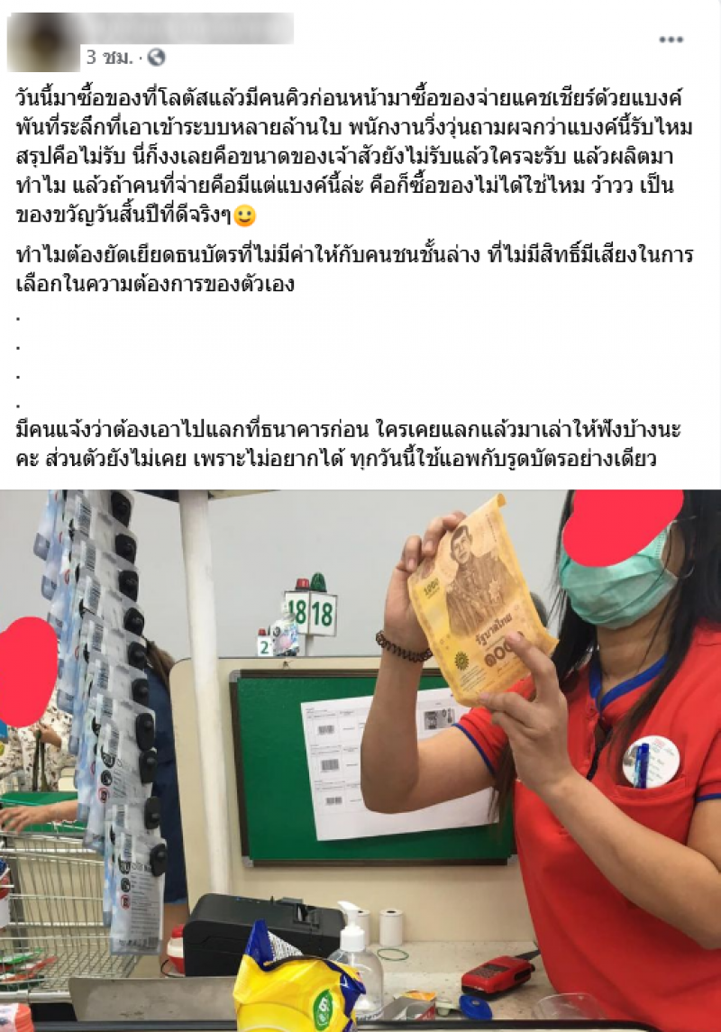 สาวสุดงง เห็นคนใช้แบงค์พันที่ระลึกซื้อของ แต่พนักงานไม่รับ