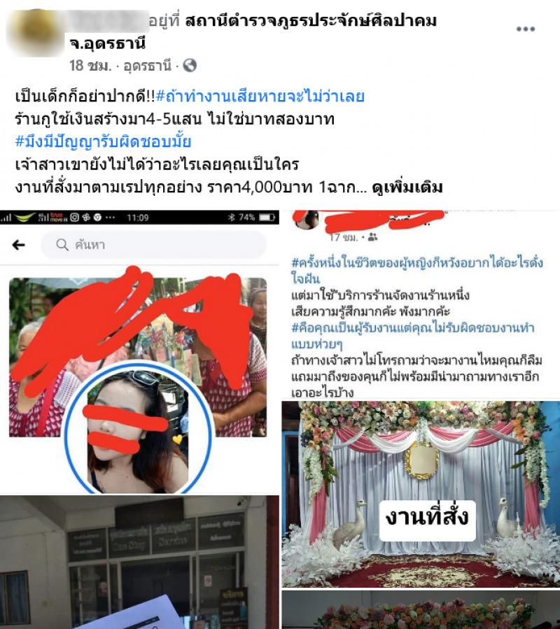 กลายเป็นเรื่องราวที่ถูกวิพากษ์วิจารณ์อย่างมากในโลกออนไลน์ เมื่อสาวคนหนึ่งได้มีการโพสต์วิพากษ์วิจารณ์แบ็กดรอปงานแต่งแห่งหนึ่ง ในพื้นที่ จ.อุดรธานี ทำเอาเจ้าของผู้ที่รับทำแบ็กดรอป ทนไม่ไหว ต้องขึ้นโรงพักแจ้งความ เนื่องจากทำให้ได้รับผลกระทบ ทั้งที่ตนเองก็ตั้งใจทำงานอย่างเต็มที่ โดนงานที่รับทำนั้น ทางผู้จ้างได้ให้งบมา 4,000 บาท แต่กลับมีคนที่ไม่ใช้เจ้าของงาน มาโพสต์วิจารณ์ โดยมีชาวโซเชียลเข้ามาแสดงความิดเห็นกันเป็นจำนวนมากว่า งบเท่านี้ ได้งานขนาดนี้ถือว่าคุ้มมากแล้ว
