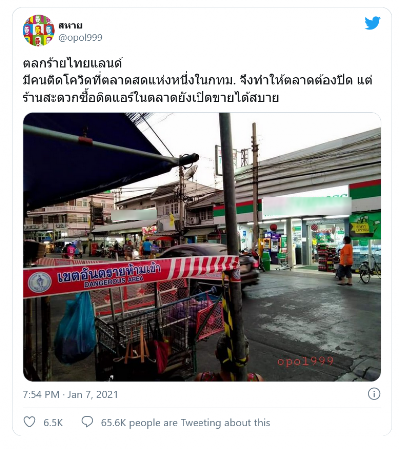 เรียกได้ว่าเป็นอีกหนึ่งเรื่องราว ที่กลายเป็นประเด็นที่ถูกนำมาวิพากษ์วิขารณ์อย่างมากในโลกออนไลน์ หลังจากที่มีผู้ใช้ทวิตเตอร์รายหนึ่ง ได้มีการเผยภาพตลาดสดแห่งหนึ่งใน กทม. ที่จำเป็นต้องปิดตัวชั่วคราว เนื่องจากต้องฏิบัติตาม มาตรการควบคุม แต่ทว่าเมื่อมองไปยังถนนฝั่งตรงกันข้าม กลับพบว่ามีร้านสะดวกซื้อสองร้าน ยังสามารถเปิดได้ตามปกติ จึงเป็นเหตุให้ถูกนำมาเปรียบเทียบถึงความเท่าเทียมในสังคม