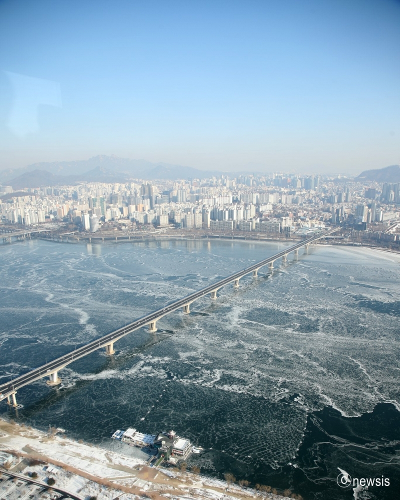 วันที่ 13 มกราคม เฟซบุ๊กเพจ FM91 Trafficpro ได้มีการรายงานภาพพร้อมระบุว่า คลื่นความเย็นพัดเข้าสู่เกาหลีใต้ ทำให้อากาศหนาวจัดในรอบ 57 ปี จนแม่น้ำฮัน กลายเป็นลานน้ำแข็ง ภาพมุมสูงบริเวณแม่น้ำฮัน ในกรุงโซล ของเกาหลีใต้ กลายเป็นลานน้ำแข็ง อุณหภูมิติดลบ 20 องศาเซลเซียส หนาวที่สุดในรอบ 57 ปี โดยภาพเหล่านี้ถูกถ่ายไว้เมื่อวันที่ 10 มกราคม ที่ผ่านมา บางคนก็บอกว่า น้ำประปาในเกาหลีใต้ใช้ไม่ได้ เพราะเป็นน้ำแข็งไปหมดแล้ว ล่าสุด สำนักงานอุตุนิยมวิทยาเกาหลีใต้ คาดการณ์ว่าอุณหภูมิทั่วประเทศเกาหลีใต้จะเพิ่มขึ้น 2-4 องศาเซลเซียส แต่อากาศยังคงหนาวเย็นติดลบ 10 องศาเซลเซียสต่อไป