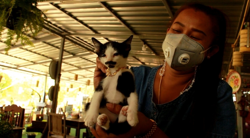 จากที่เลี้ยงมาก็ไม่มีแบบนี้ เลยตั้งชื่อว่า ของขวัญ เพราะไปเจอลูกแมวตัวนี้เมื่อวันที่ 1 มกราคมที่ผ่านมา จึงตั้งใจว่าจะเลี้ยงดูแลกันตลอดไป รู้สึกผูกพันโดยให้มันนอนด้วยทุกคืน ให้กินนม กินอาหาร ทุกวันก็จะเอามาเล่นด้วยที่ร้านก๋วยเตี๋ยวปิ่นโตมาเฮง กลายเป็นความรักความผูกพัน จะไปไหนก็พาขึ้นรถไปด้วย