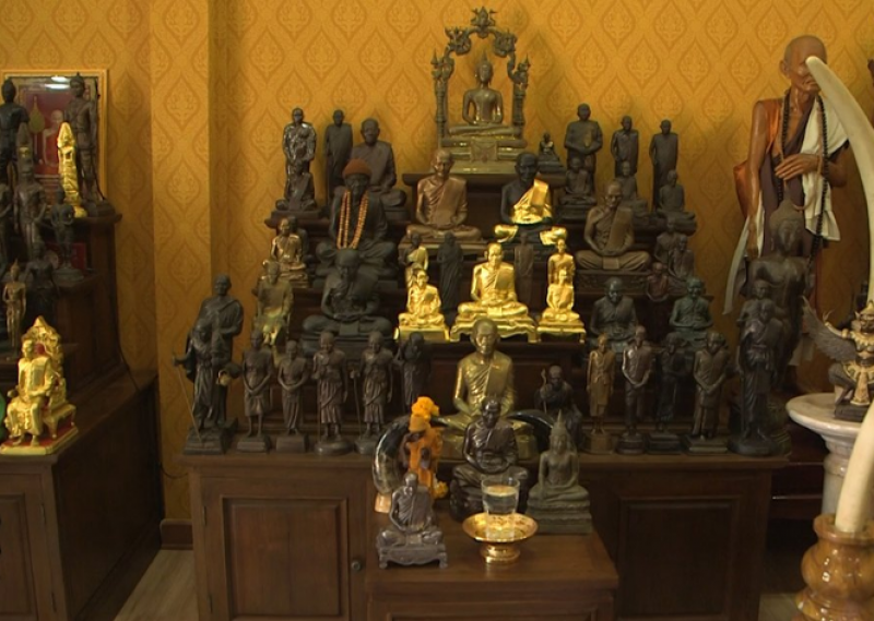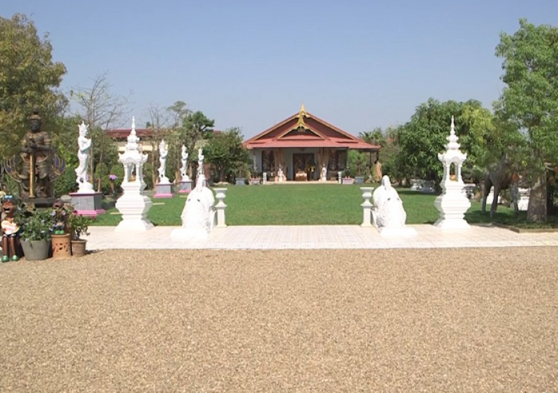 ในบ้านของนายอาเดียว เมืองช้าง อายุ 41 ปี ร่างทรงที่ถูกพาดพิง เป็นพื้นที่ขนาดใหญ่ 6 ไร่ 2 งาน 15 ตร.ว. ตกแต่งสวนอย่างสวยงาม มีสระบัว มีรูปปั้นทองเหลืองสิ่งศักดิ์สิทธิ์มากมาย พบว่าการตกแต่งเป็นแนวจีนโบราณ มีพระพุทธรูปมากมาย