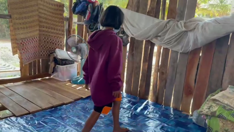 ทำให้สถานภาพครอบครัวที่ตนไปอาศัยอยู่เพิ่มขึ้น จึงตัดสินใจขอออกไปอยู่เป็นต่างหาก เพราะเกรงใจญาติ และขอปลูกกระท่อมบนที่ดินของญาติ ด้วยการขอเศษไม้ของชาวบ้านมาทำเป็นหลังหลบฝนหลบแดดมาได้ประมาณ 3 เดือนที่ผ่านมา ตอนนี้หารับจ้างทำงานทั่วไป เพื่อหาเลี้ยงครอบครัว