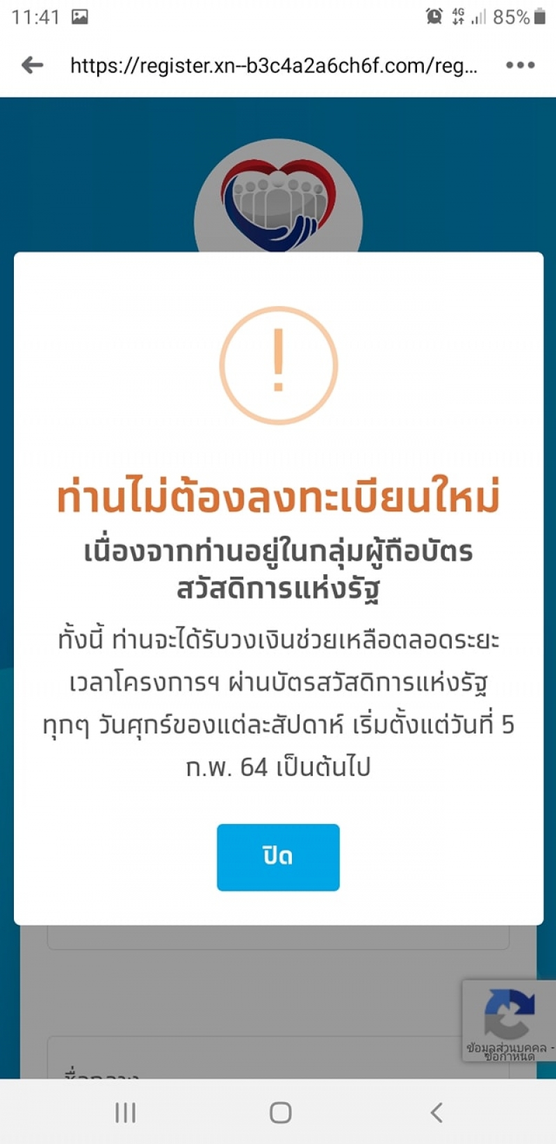 สาวงง ลงทะเบียนเราชนะ มีข้อความแจ้งเตือน