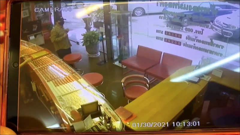 อย่างไรก็ตาม มีข้อมูลว่า ก่อนเกิดเหตุไม่กี่นาที ผู้ก่อเหตุได้ทำทีไปขอดูทองคำ ที่ร้านห้างทองแห่งหนึ่ง ตั้งอยู่บนถนนท่าเรือ หน้าโรงเรียนตากพิทยาคม ท่าทางต้องสงสัย เจ้าของร้านจึงแอบ ถ่าย คลิป และบันทึกภาพไว้ ขณะผู้ก่อเหตุวนเวียนขอดูทอง 2 รอบ เจ้าของร้าน จึงโทรศัพท์แจ้ง 191ขณะที่ตำรวจกำลังเดินทางมาถึงร้านห้างทอง ไม่ถึง 5 นาที ผู้ก่อเหตุก็เข้าไปก่อเหตุ ที่ร้านห้างทอง ในตัวตลาดเมืองตาก บนถนนจอมพล ห่างกัน ประมาณ 2-3 กม. คาดว่า ผู้ก่อเหตุวนเวียนก่อเหตุ โดยอาศัยจังหวะเจ้าของร้านเผลอ จึงก่อเหตุได้สำเร็จดังกล่าว