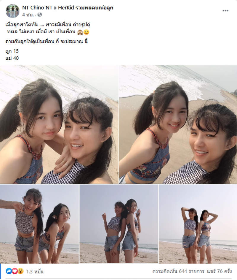 เรียกได้ว่าเป็นอีกหนึ่งเรื่องราวที่เรียกเสียงฮือฮาอย่างมากในโซเชียล เมื่อคุณแม่สาวคนหนึ่ง ได้โพสต์ภาพคู่กับลูกสาว ซึ่งปัจจุปัจก็ตัวโตเท่ากับคุณแม่แล้ว และที่สร้างความฮือฮาก็คือ หน้าตาของคุณแม่นั้น ยังดูอายุน้อยอยู่เลย เมื่อถ่ายรูปคู่กับลูกสาวจึงทำให้รู้สึกเหมือนกับว่าทั้งคู่ เป็นเพื่อนกันหรือเป็นพี่น้องกันเลยทีเดียว โดยคุณแม่ได้โพสต์ว่า เมื่อลูกเราโตทัน เราจะมีเพื่อน ถ่ายรูปคู่ ทะเล ไม่เหงา เมื่อมี เรา เป็นเพื่อน ถ่ายกับลูกให้ดูเป็นเพื่อน ก็ จะประมาณ นี้ ลูก 15 แม่ 40