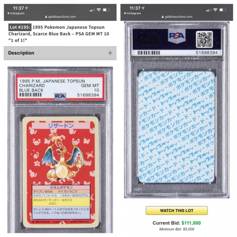 เป็นอีกหนึ่งเรื่องราว ที่สร้างความฮือฮาเป็นอย่างมาก หลังจากที่ผู้ใช้เฟซบุ๊กชื่อว่า Krit Nu Kaewsuwan ได้เปิดเผยว่า ตนได้นำการ์ดโปเกมอนของตนเองไปประมูลในเว็บ Goldinauctions ซึ่งการ์ดที่เปิดประมูลนั้นเป็นการ์ดโปเกมอนสะสมชนิดหายาก โดยก่อนหน้านี้เขาได้ระบุว่า สวัสดีครับพี่พี่น้องน้องนักลงทุนและนักสะสมทุกคน ในวันนี้ผมขอแชร์ปาฏิหาริย์ที่เกิดขึ้นในชีวิตของผม และภูมิใจนำเสนอการ์ด 1995 Pokemon Japanese Topsun Charizard, Scarce Blue Back-PSA GEM MT 10 "1 of 1 ซึ่งตอนนี้เป็นใบเดียวในโลกที่ได้เกรด 10 ซึ่งมันเป็นของผมเอง และตอนนี้ผมนำไปประมูล ที่เว็บ www.goldinauctions.com ในวันพรุ่งนี้จะเป็นการประมูลวันสุดท้ายที่ตื่นเต้นที่สุดในชีวิตผม จึงอยากชวนให้ทุกคนมีส่วนร่วมลุ้นไปกับผม ผมไม่รู้เลยว่าการประมูลจะจบเท่าไหร่แต่อยากขอกำลังใจจากทุกๆคนด้วยครับ