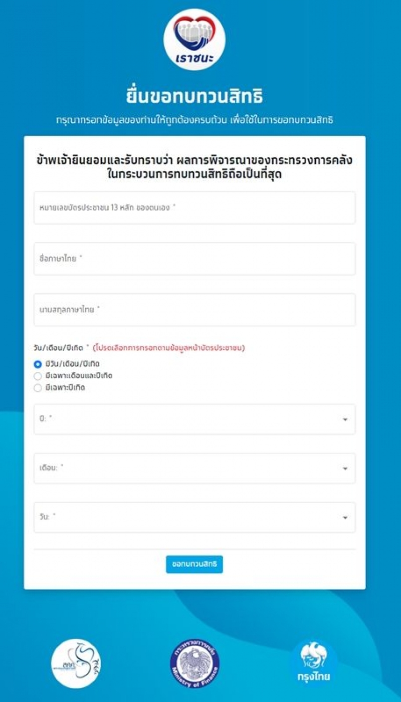 4.กระทรวงการคลังนำข้อมูลไปคัดกรองใหม่อีกครั้ง โดยผู้ยื่นขอทบทวนสิทธิ์ต้องมีคุณสมบัติตามที่มติคณะรัฐมนตรี (ครม.) มีมติเห็นชอบเมื่อวันที่ 19 ม.ค.ที่ผ่านมา คือ