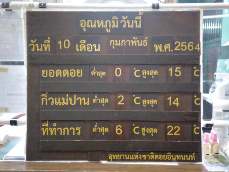 โดยเฉพาะความหนาวเย็น กลับมายะเยือกเลย เพราะอุณหภูมิวัดได้ต่ำสุดเช้าวันนี้อยู่ที่ 0 องศาเซลเซียส วัดได้บริเวณ ยอดดอย ขณะที่กิ่วแม่ปานวัดได้ 2 องศาฯ และที่ทำการอุทยานวัดได้ 6 องศาฯ นับว่าหนาวเย็นมาก