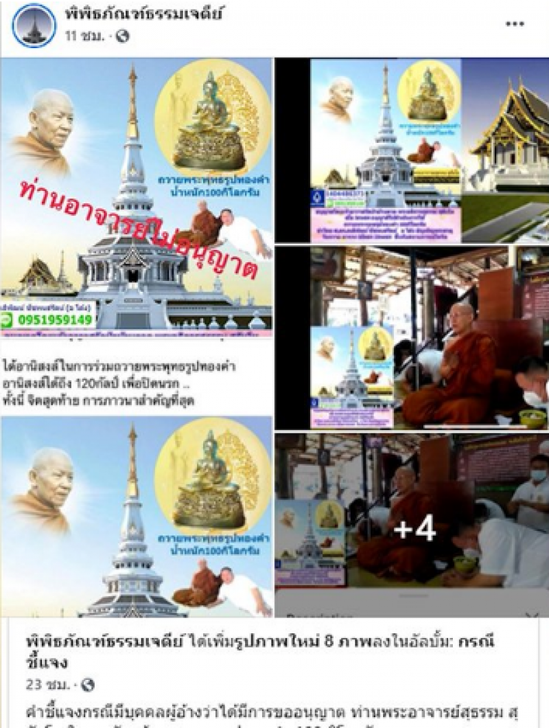จากกรณีเพจเฟชบุ๊ก วัดป่าบ้านตาด โพสต์ข้อความว่า ประกาศวัดป่าบ้านตาด เนื่องด้วย ณ ปัจจุบันนี้ มีบุคคลแอบอ้างว่าได้รับอนุญาตจากพระอาจารย์สุธรรม สุธัมโม เจ้าอาวาสวัดป่าบ้านตาด ให้ดำเนินการถวายพระพุทธรูปทองคำหนัก 100 กิโลกรัม แล้วจะนำมาถวายเพื่อประดิษฐานไว้ ที่พิพิธภัณฑ์ธรรมเจดีย์พระธรรมวิสุทธิมงคล (หลวงตาพระมหาบัว ญาณสัมปันโน) และบุคคลดังกล่าวได้ประกาศเชิญชวนบุคคลทั่วไปให้ทำบุญด้วยการโอนเงิน เข้าบัญชีส่วนตัวนั้น ทางวัดป่าบ้านตาดขอแจ้งว่าเรื่องดังกล่าวไม่เป็นความจริง เป็นการแอบอ้าง