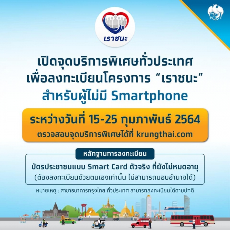 เริ่มแล้วพรุ่งนี้ เราชนะ เปิดรอบพิเศษลงทะเบียนเยียวยา 7,000 ผ่าน ธ.กรุงไทยทุกสาขา