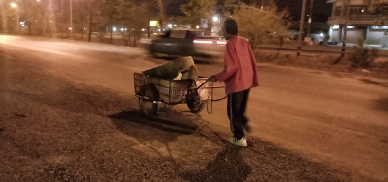 หนุ่มเจอชายชรา เข็นรถอยู่ข้างทาง