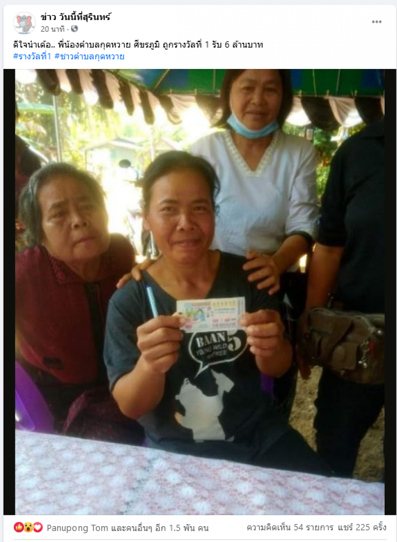 ดีใจนำเด้อพี่น้องตำบลกุดหวาย ศีขรภูมิ ถูกรางวัลที่ 1 รับ 6 ล้านบาท