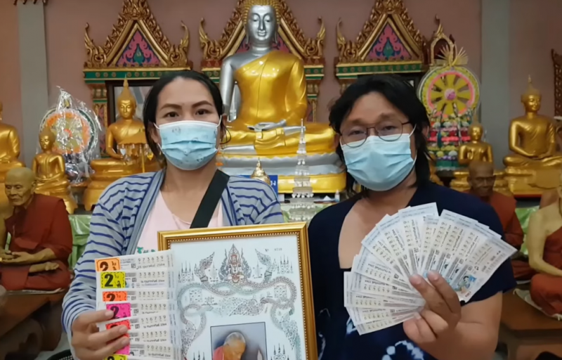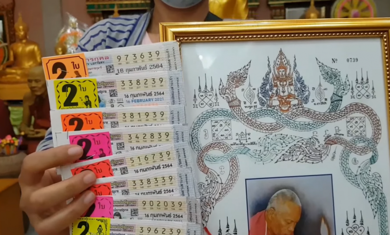 เมื่อเวลา 17.00 น.วันที่ 16 ก.พ.2564 ที่วัดสว่างอารมณ์ ต.ขุนแก้ว อ.นครชัยศรี จ.นครปฐม นายวีรชัย สุขมงคลบุญ อายุ 39 ปี และ น.ส.สุพรรษา โสภา อายุ 36 ปี ชาวขอนแก่น อาชีพเย็บผ้าเหมาที่ อ.สามพราน จ.นครปฐม นำลอตเตอรี่ จำนวน 39 ใบซึ่งถูกรางวัลเลขท้าย 2 ตัวประจำวันที่ 16 ก.พ.2564 เดินทางมากราบ พระเงินพระทอง หรือ หลวงพ่อรวย พระพุทธรูปศักดิ์สิทธิ์ของวัดสว่างอารมณ์ ด้วยความดีใจ
