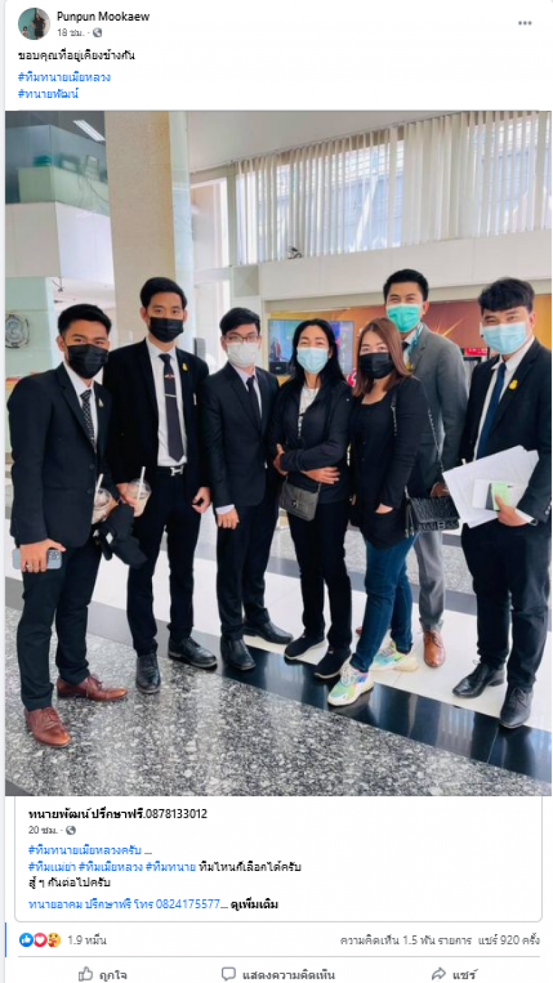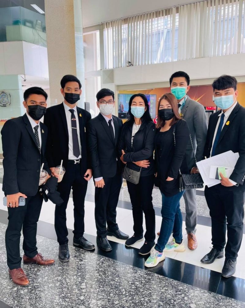 ล่าสุดไปส่งดานสาว ภรรยาตัวจริง โดยได้โพสต์ภาพคู่กลุ่มทนาย งานนี้เจ้าสาวโดนฟ้องหนักแน่นอน ทั้งนี้ยังได้ระบุข้อความว่า ขอบคุณที่อยู่เคียงข้างกัน