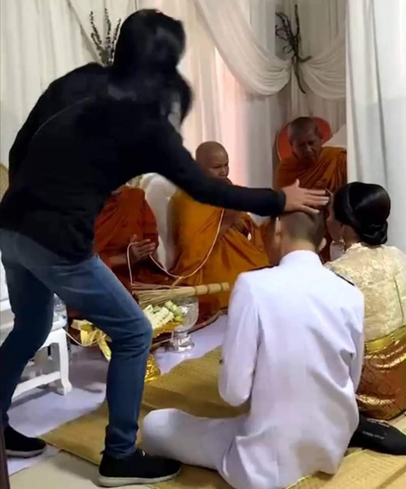 พระครูสมุห์พงศ์ยศ พลญาโณ เจ้าอาวาสวัดท่าชัย เปิดเผยว่า ช่วงเกิดเหตุ ระหว่างที่กำลังเจริญพระพุทธมนต์ ได้ตั้งใจเจริญพระพุทธมนต์ สำรวมจิตให้เป็นสมาธิมากที่สุด เพื่อให้เกิดพลังแก่พุทธมนต์ ในระหว่างที่กำลังหลับตาสวดอยู่นั้นจิตเริ่มเป็นสมาธิ แต่ก็มีเสียงมากระทบแว่ว ๆ ที่หู ตอนแรกคิดว่าเด็กเถียงกัน สักพักเสียงเริ่มหนักขึ้น จึงลืมตาขึ้นมาก็ตกใจ เห็นเจ้าสาวนั่งรับพรและมีน้ำตาซึม
