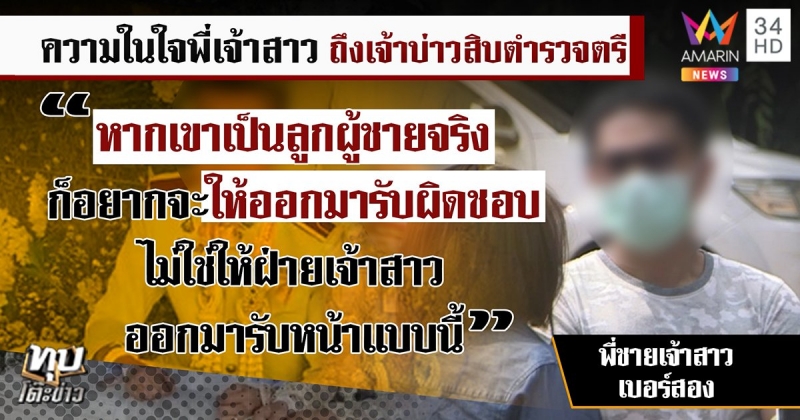 ล่าสุด พี่ชายของ น.ส.ส้ม (นามสมมติ) เจ้าสาว กล่าวว่า ขณะนี้ตัวเจ้าสาวและครอบครัวยังไม่พร้อมที่จะให้สัมภาษณ์หรือให้ข้อมูล เนื่องจากทางครอบครัวไม่ทราบรายละเอียดที่แน่ชัด ซึ่งความจริงอยากให้รอเจ้าสาวพร้อมตอบคำถาม และออกมาให้ข้อมูลด้วยตัวเอง