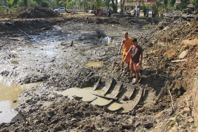 เจ้าอาวาสขุดสระ พบ เรือโบราณ ของใช้
