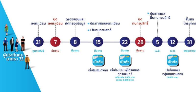 ส่วนกรณีผู้ประกันตนบางรายพบปัญหาลงทะเบียนไม่สำเร็จ โดยระบบแจ้งว่าท่านไม่ได้เป็นผู้ประกันตนมาตรา 33 ในระบบประกันสังคมในขณะที่ผู้ประกันตนยืนยันว่า ได้นำส่งเงินสมทบประกันสังคมทุกเดือน เบื้องต้นผู้ประกันตนสามารถยื่นทบทวนสิทธิ์ผ่าน www. ม33เรารักกัน .com ได้ตั้งแต่วันที่ 15-28 มี.ค.64