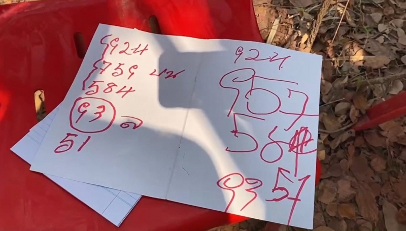 จากการที่ตนมาร่วมดูพิธีของร่างทรง ก็ได้จดตัวเลขที่ร่างทรงอาจารย์บุญธรรมสื่อออกมาคือเลข 957,924,584,93,51