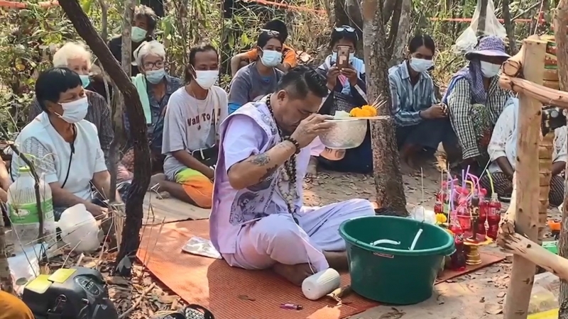 ซึ่งวันนี้ มีอาจารย์บุญธรรม หรือในนามร่างทรงปู่นาคราช เดินทางมาจากจังหวัด ลพบุรี เนื่องจากงวดที่ผ่านมา มีชาวบ้านได้โชคจากการยกมือบอกของร่างทรงท่านนี้ แล้วถูกเลข 39 กันเป็นจำนวนมาก งวดนี้ก็เลยทำให้มีชาวบ้านพากันมาจองรอคอยตัวเลขจากร่างทรงอาจารย์บุญธรรม