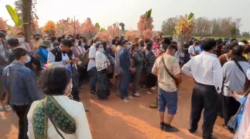 ส่วนประตูทางเข้าไปภายในวัดกุดแห่พัฒนาราม ทาง อสม.ในพื้นที่ได้มาตั้งจุดคัดกรอง ตามคำสั่งของจังหวัด เพราะว่ามีนักท่องเที่ยวและผู้แสวงบุญเดินทางมาจากพื้นที่หลายจังหวัด โดยผู้ที่ผ่านจุดคัดกรองแล้วได้เข้าไปร่วมทำบุญ พร้อมกันที่มีการแห่ต้นเงินเข้าในวัดขึ้นไปยังศาลาการเปรียญ เพื่อทำพิธีถวายผ้าป่าให้กับพระอาจารย์รัฐธรรมนูญ แต่ยังไม่มีการนับยอดปัจจัยทำบุญทอดผ้าป่า