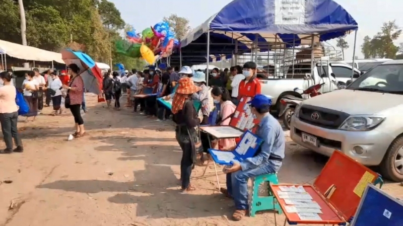 เมื่อวันที่28 ก.พ.64 ที่วัดกุดแห่พัฒนาราม บ้านนานกหงส์ หมู่ที่ 4 ต.นาทราย อ.พิบูลย์รักษ์ บรรยากาศเป็นไปด้วยความคึกคักตลอดทั้งวัน โดยตั้งแต่ช่วงเช้ามีนักท่องเที่ยวและผู้แสวงบุญจากทั่วสารทิศหลายพันคน เดินทางมาร่วมทำบุญทอดผ้าสามัคคี จนทำให้การจราจรที่จะเข้าไปยังวัดติดขัดลานจอดรถที่ทางวัดเตรียมไว้มีรถยนต์จอดแน่นล้น