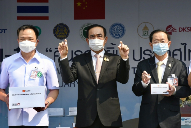 โดยมี พล.อ.ประยุทธ์ จันทร์โอชา นายกรัฐมนตรี และ นายอนุทิน ชาญวีรกูล รองนายกฯและรัฐมนตรีว่าการกระทรวงสาธารณสุข (รมว.สธ.) นายสาธิต ปิตุเตชะ รัฐมนตรีช่วยว่าการกระทรวงสาธารณสุข(รมช.สธ.) พร้อมคณะผู้บริหารกระทรวงสาธารณสุข และผู้เกี่ยวข้อง รอรับวัคซีนล็อตแรกของประเทศไทยด้วยตนเอง