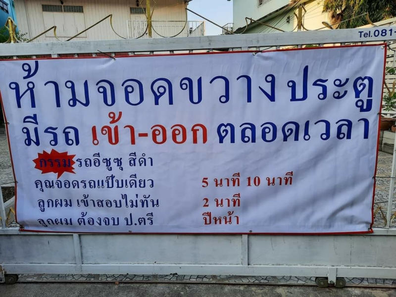 พ่อติดป้าย ห้ามจอดขวางหน้าบ้าน