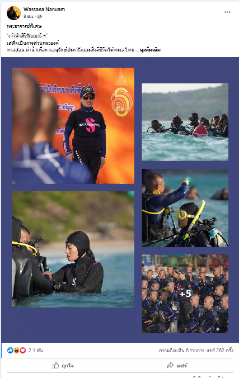 พระอาจารย์พิเศษเจ้าฟ้าสิริวัณณวรี ฯ เสด็จเป็นการส่วนพระองค์ ทรงสอน ดำน้ำเพื่อการอนุรักษ์ปะการังและสิ่งมีชีวิตใต้ทะเลไทย แก่ นักเรียนนายเรือ สานต่อการอนุรักษ์ธรรมชาติ