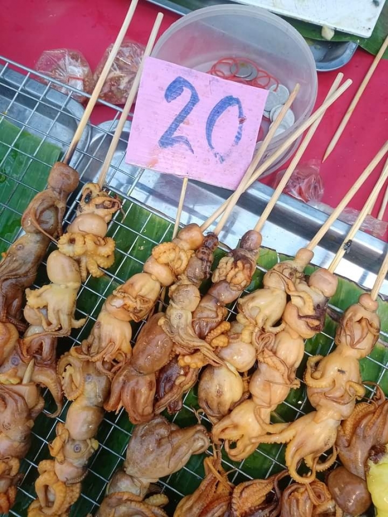 หนุ่มเดินตลาด เจอร้านหมึกย่าง