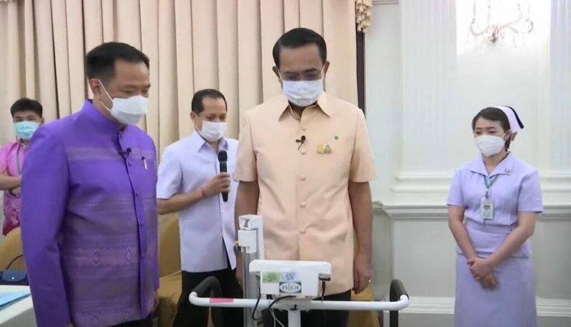 จากนั้น พล.อ.ประยุทธ์ ทำการชั่ง น้ำ ห นั ก ไ ด้ 83.1 กิโลกรัม ค ว า ม ดั น อยู่ที่ 157/88 ซึ่งอยู่ในเกณฑ์ปกติ ไม่มีประเด็นความเสี่ยงใดในการเลื่อนฉีควัคซีน ก่อนจะเซ็นเอกสารยินยอมสมัครใจรับการฉีดวัคซีน