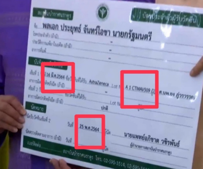 จากนั้นเวลา 08.44 น. นายกรัฐมนตรีเข้ารับการฉีดวัคซีน จากนพ.ยง ภู่วรวรรณ หัวหน้าศูนย์เชี่ยวชาญเฉพาะทางด้านไวรัสวิทยาคลินิก ภาควิชากุมารเวชศาสตร์ คณะแพทยศาสตร์ จุฬาลงกรณ์มหาวิทยาลัย โดยหมายเลขลอตวัคซีนหมายเลขท้าย 509 ทำเอาโซเชียลแห่แชร์ภาพ เลขข้างขวด งานนี้ทำเอาหลายๆคนฮือฮากันยกใหญ่เลยจ้า