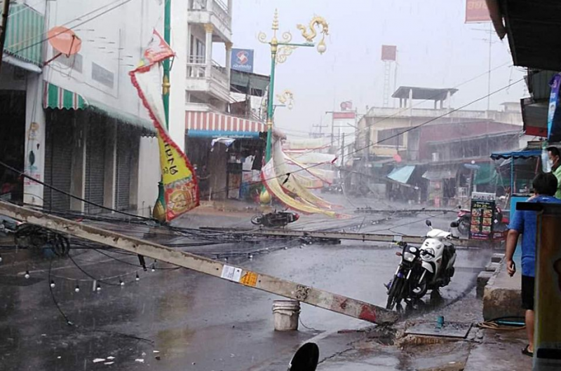 โดยเฉพาะในเขตพื้นที่ย่านการค้าหลักอย่างตลาดเทศบาลไพศาลี ได้รับความเสียหายอย่าง หนัก เนื่องจากแรงของพายุได้พัดพาเสาไฟฟ้า หัก โค่น ลงมากองระเนระนาด อยู่บนพื้นถนนบริเวณหลังศาลเจ้าพ่อเจ้าแม่ไพศาลีถึง 5 ต้น ปิดเส้นทาง จนรถไม่สามารถสัญจรผ่านไปมาได้