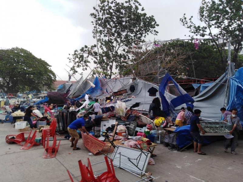 จากการสอบถามพ่อค้าซึ่งอยู่ในเหตุการณ์ เล่าว่าก่อนเกิดเหตุมองเห็นท้องฟ้าสีแดง ก่อนที่จะมีลมหมุนพัดเข้ามา แต่ไม่มีฝนตก ซึ่งความแรงของลมพัดเอาเต้นท์ ร้านค้า โต๊ะ เก้าอี้ ที่อยู่ในงานพังเสียหาย ส่วนพ่อค้าแม่ค้า และประชาชนที่กำลังเดินในงานก็พากันวิ่งหลบเข้าที่ปลอดภัย ซึ่งเกิดมาไม่เห็นลมหมุนที่พัดแรงขนาดนี้