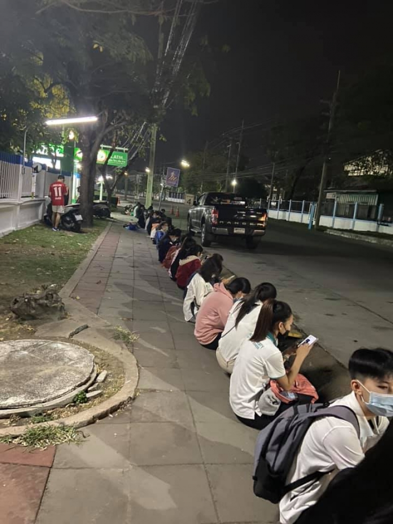 คนแห่ต่อแถวสมัครโรงงานดัง ทนลำบากนั่งรอข้ามคืน