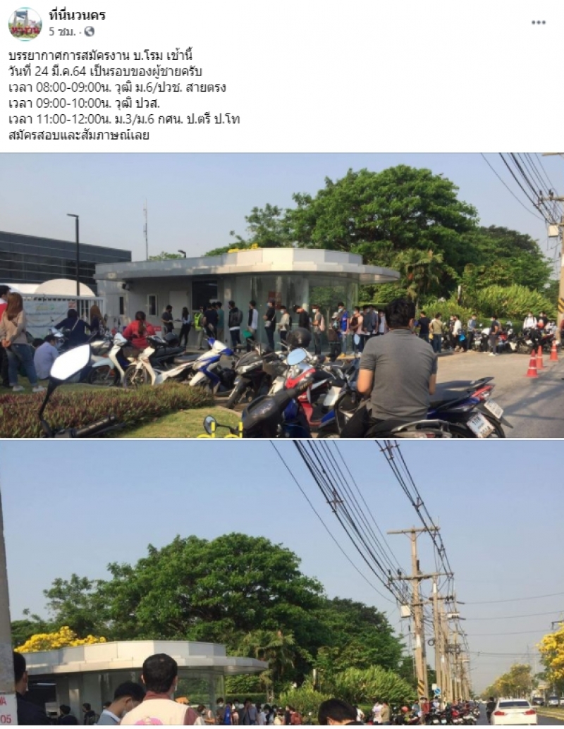 ทั้งนี้ หลังจากที่เรื่องราวดังกล่าวได้มีการโพสต์ภาพออกไป ก็มีชาวโซเชียลเข้ามาแสดงความคิดเห็นกันเป็นจำนวนมาก ในขณะที่บางคนบอกว่ามาสมัครตั้งแต่เช้า กว่าจะถึงคิวก็ตอนเที่ยงเลยทีเดียว กลายเป็นอีกหนึ่งภาพที่สะท้อนให้เห็นว่า ยังคงมีผู้คนอีกมากมาย ที่ยังต้องการโอกาสในการหางานทำ ในวิกฤติที่ต้องเผชิญแบบนี้