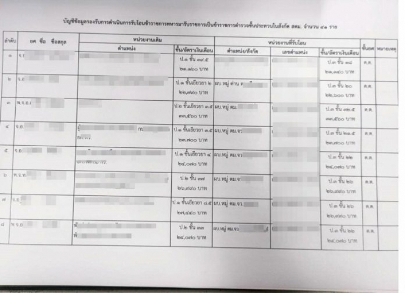 จากเอกสารดังกล่าวพบทหารส่วนใหญ่โอนมาเป็นยศดาบตำรวจ ในระดับผบ.หมู่ด่าน และผบ.หมู่ตม. ส่วนต่างๆ ทั่วประเทศ โดยคงชั้นเงินเดือนเดิม แต่เปลี่ยนยศตำรวจไปตามชั้นเงินเดือน