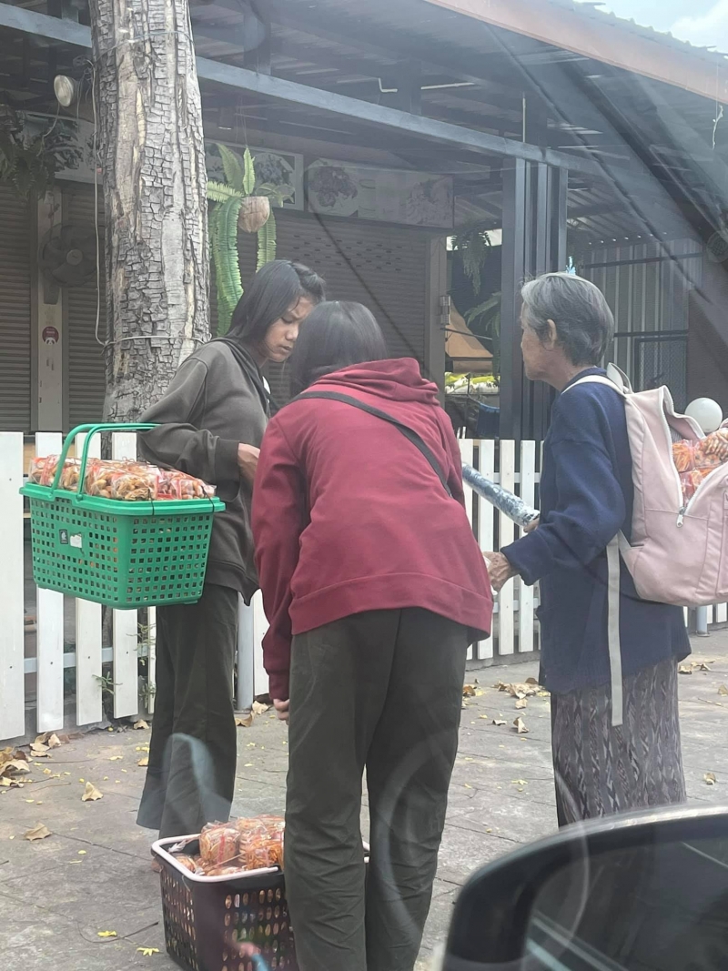 โดยผู้โพสต์ได้ระบุข้อความาว่า โธ่ลูก วัยขนาดหนูน่าจะได้เล่าได้เรียนนะ แต่ต้องออกมาเร่ขายขนมกับคุณยาย ชีวิตที่เลือกไม่ได้จริง ๆ เจอน้องมาขายที่ตลาดกบินทร์บุรี จังหวัดปราจีนบุรี น้องทำหน้าแบบเหนื่อยมากอยากขายอ้อนวอนให้ช่วยซื้อ คนปราจีน ถ้าเห็นยายกับหลานสาว 2 คนนี้ เดินไปขายตรงไหน ช่วยกันอุดหนุนหน่อยนะคะ น้องบอกว่ามาจากร้อยเอ็ด พักอยู่ที่วัดเลียบ น่าสงสารมาก ๆ ขอให้ยาย และหลาน ขายหมดไว ๆ นะคะ