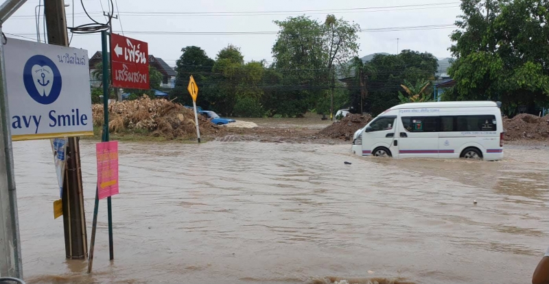 เมื่อเวลา 11.30 น. วันที่ 4 เม.ย. มีรายงานว่า เกิดฝนกระหน่ำลงมาต่อเนื่องเป็นเวลากว่า 2 ชั่วโมง ที่อ.สัตหีบ จ.ชลบุรี ทำให้น้ำท่วมถนนสุขุมวิท เส้นทางสัตหีบ-พัทย า ทั้งสองฝั่งถนนบริเวณเยื้องตลาด 700 ไร่สัตหีบ รถที่สัญจรไปมาต้องหยุดชะลอเพื่อให้น้ำระบายลดลงทำให้รถติดยาวเป็นกิโลเมตร บางคันลุยน้ำท่วมครึ่งคันรถ และน้ำยังไหลไปท่วมบ้านเรือนที่ติดกับถนน ชาวบ้านต้องออกมาช่วยกันระบายน้ำเพื่อให้น้ำลดลง ซึ่งใช้เวลากว่าชั่วโมงน้ำจึงระบายลดลงและใช้ถนนได้ตามปกติ